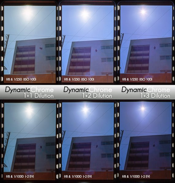 D9 “DynamicChrome” Warm-Tone Dynamic 1st Developer renders approximately 9+ stops of usable dynamic-range while maintaining rich warm-tones and vibrant color-contrast with preserved highlight and shadow detail (optimized for scanning) for a more cinematic look. Mixed stock solution can be measured out at 1/2 the tank capacity and diluted 1+1 with water to make a working solution for normal warm-tone development. Dilute 1+2 or 1+3 with water for further preserved highlight detail and a more neutral-tone daylight color balance.