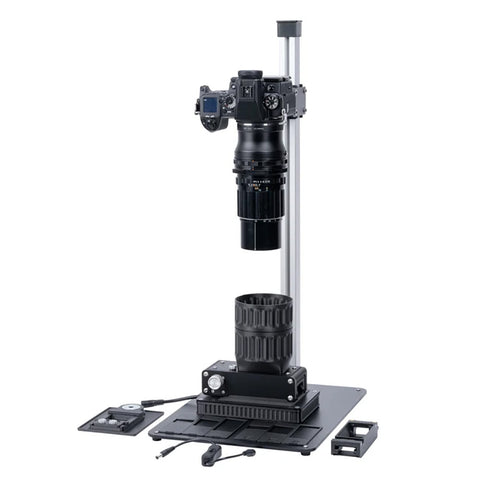 At the core of this kit is the Pro Film Carrier 35 MK2, the latest and most advanced film carrier for 35mm rolls or strips of film. This carrier works with all conventional 35mm film formats with its included masks for half frame, standard frame, and panoramic/Xpan formats.